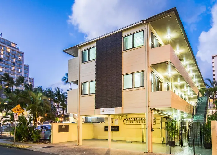 Polynesian Residences Waikiki Beach er et 4 stjernede charmerende hotel som ligger ved siden af Waikiki Shopping Plaza. Hotellet tilbyder en offentlig parkeringsplads i nærheden og en udendørs pool.